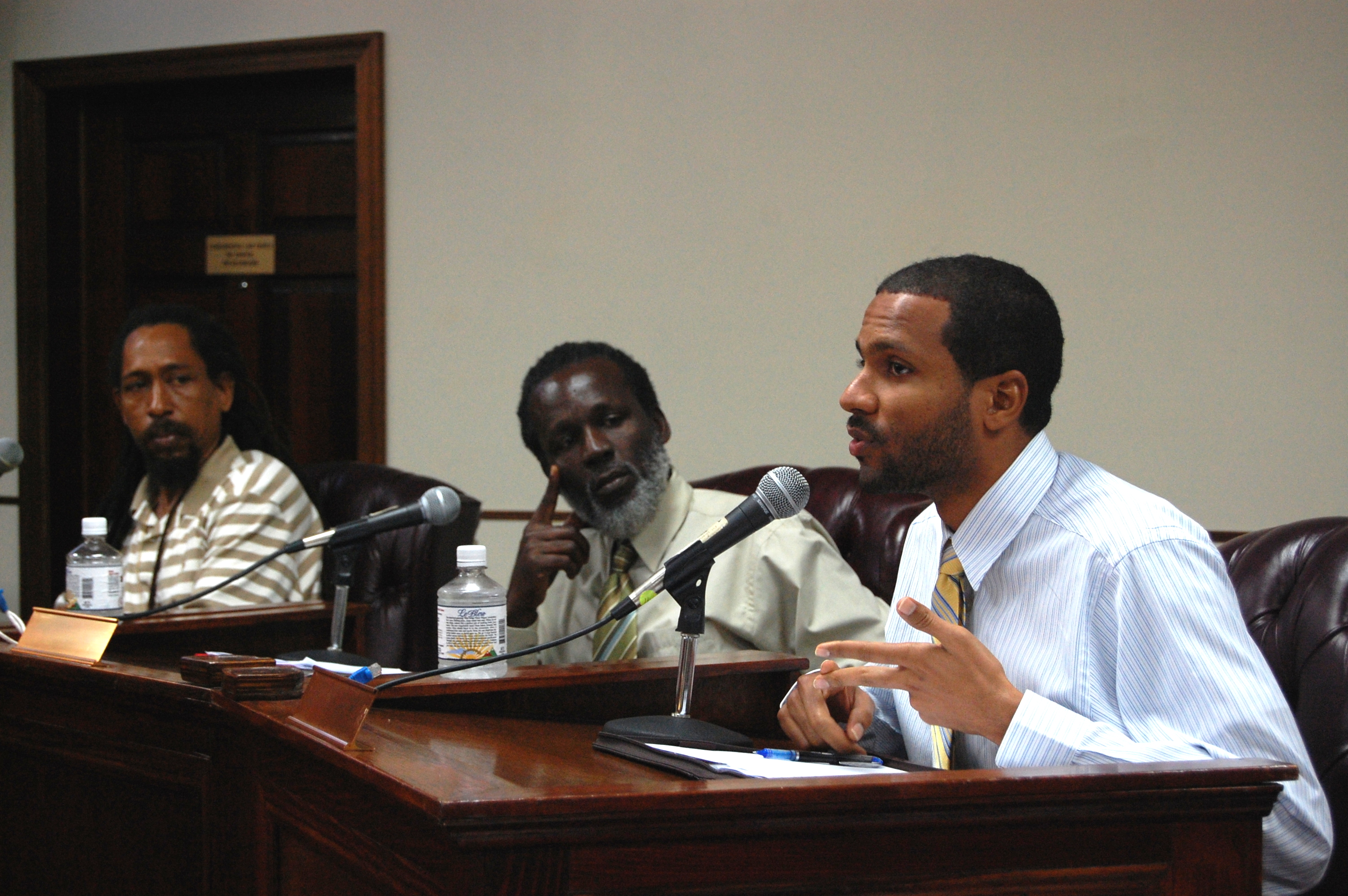 Testifiers discuss federal peace officer bill during a hearing in Frederiksted.